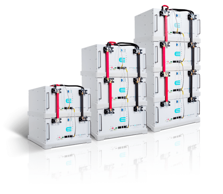 Stacked horizontally onto each other to form a tower with pedestals included, (one per module) or 19” rack mounted with brackets (cabinet excluded). Vertical mounting on floor or wall (shelf/bracket) with terminals facing upwards also acceptable. Generally up to 4 x e5000’s per system (for larger capacity requirements, see Freedom Won LiTE ranges).
