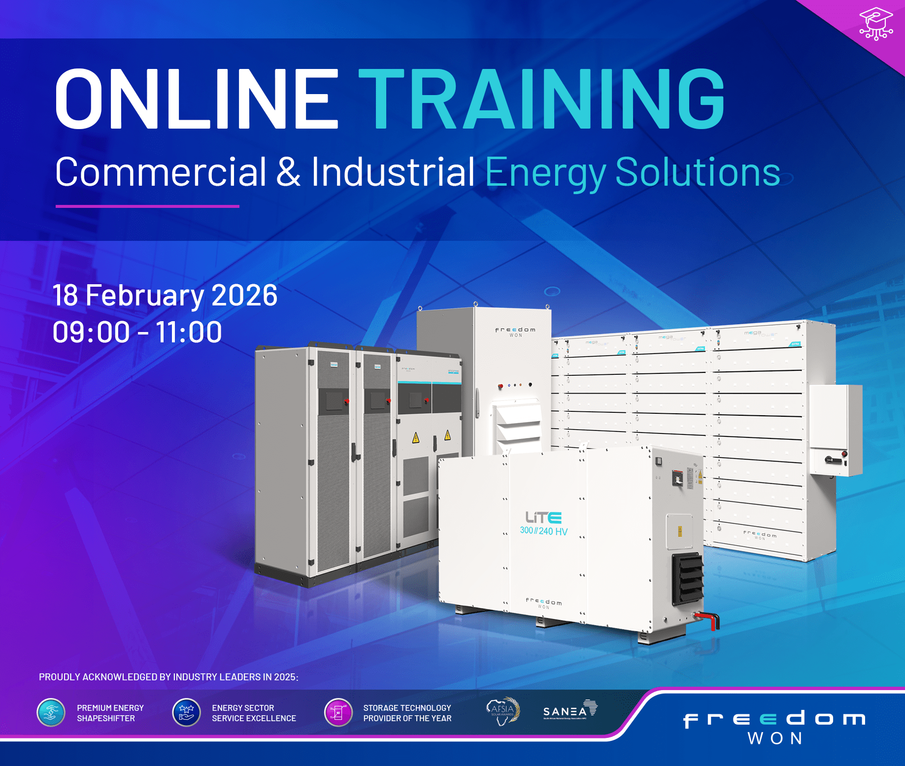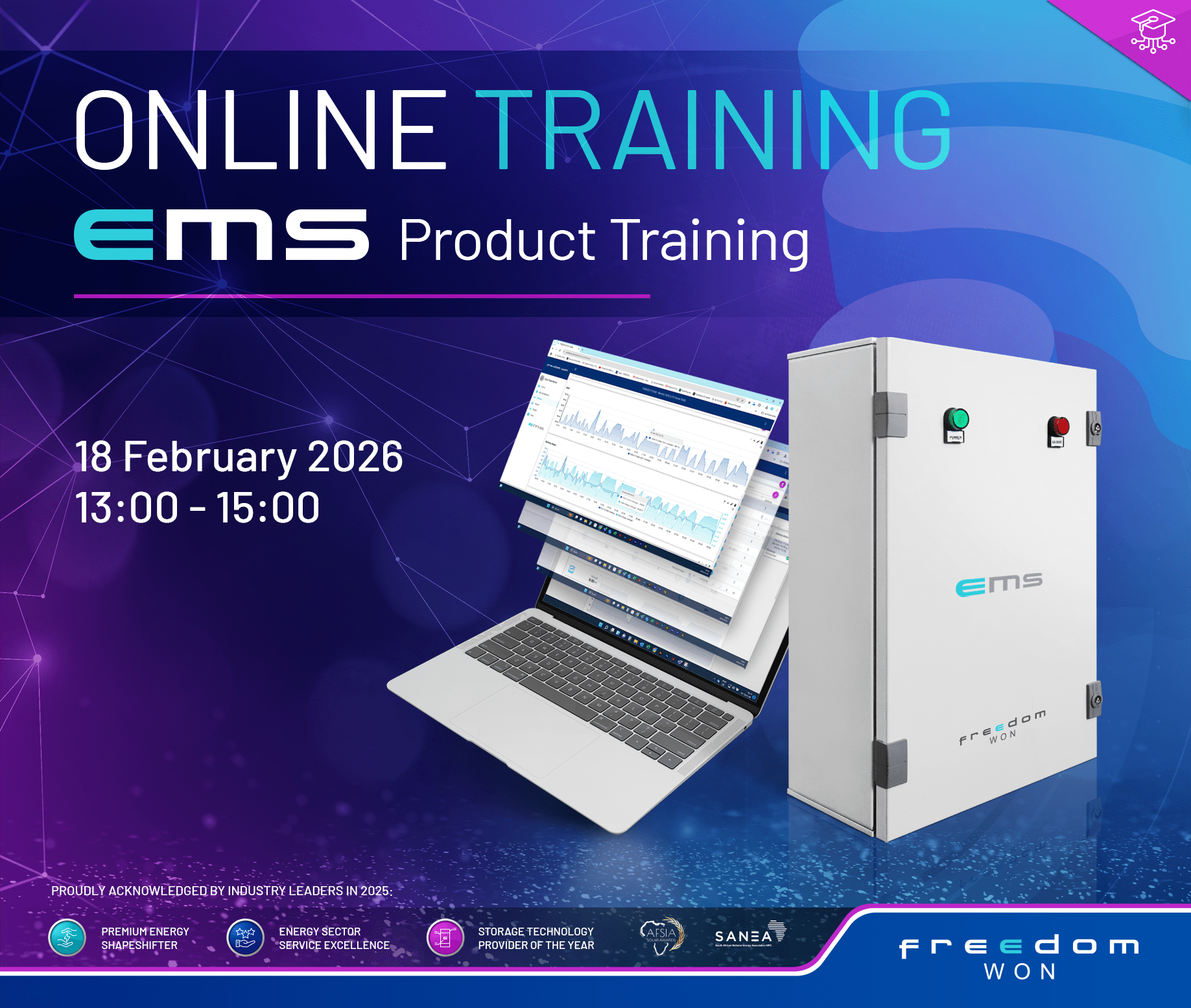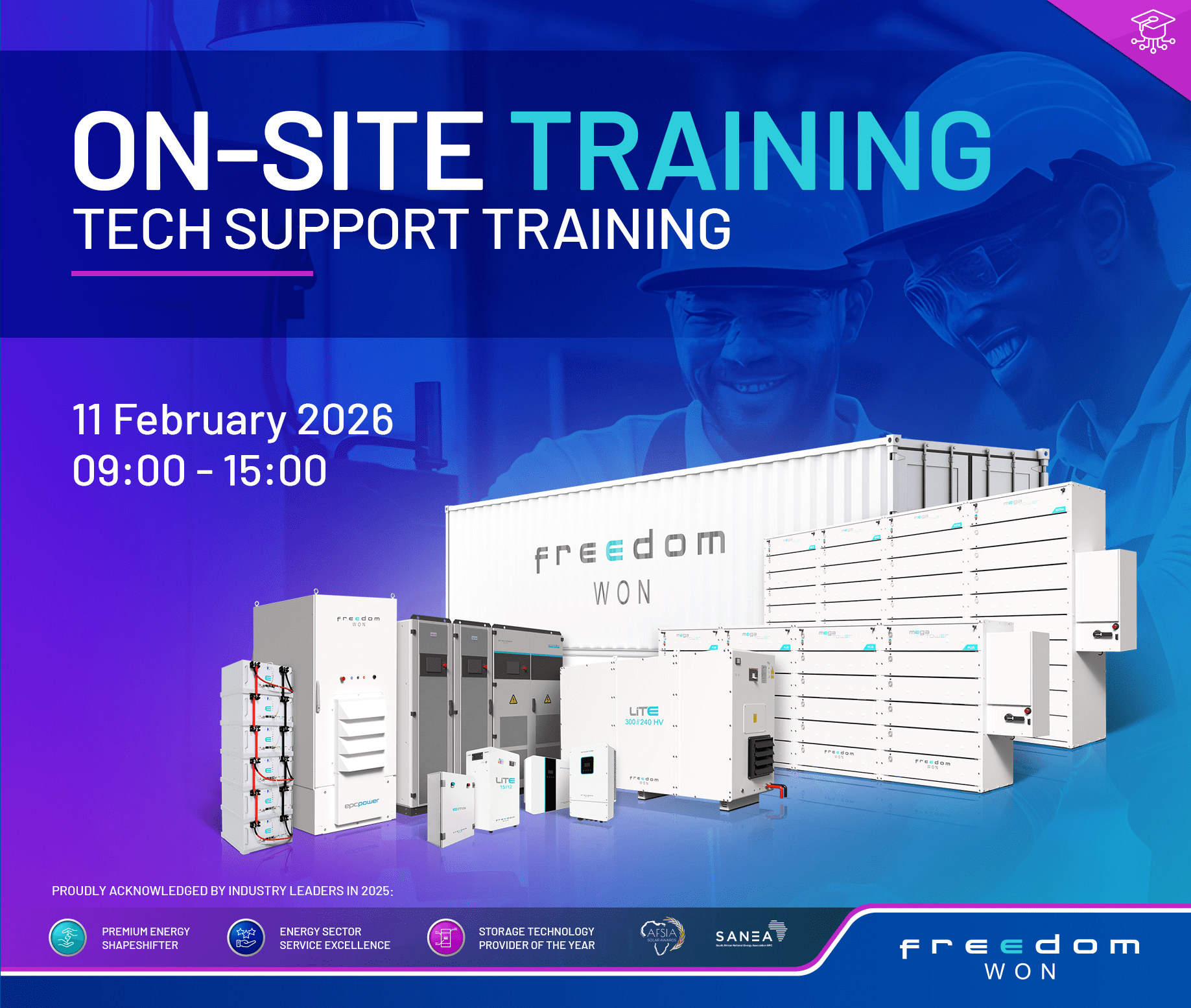 Training Overview: The Freedom Won EMS product training introduces users to our Energy management system. It covers the site management functions, device integration, and management, and showcases real-world user cases […]